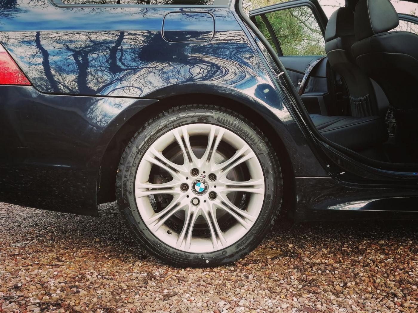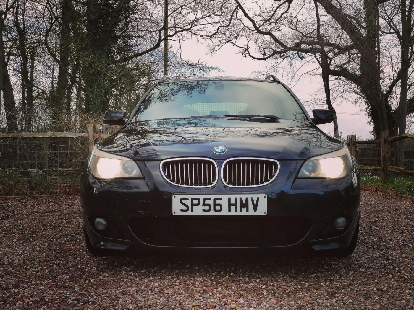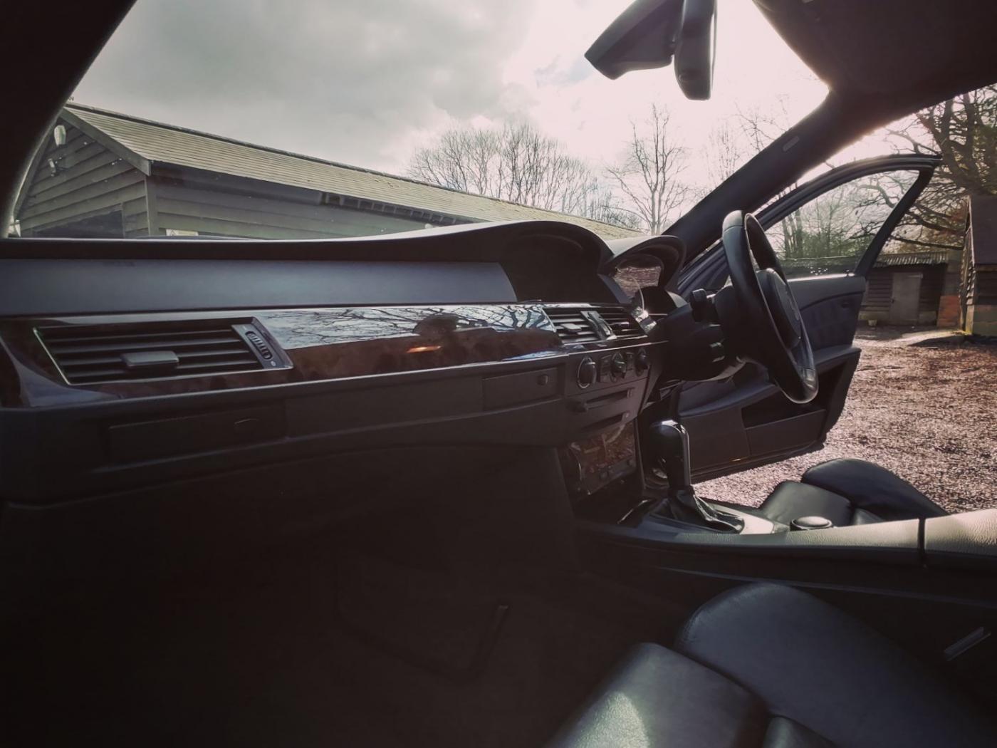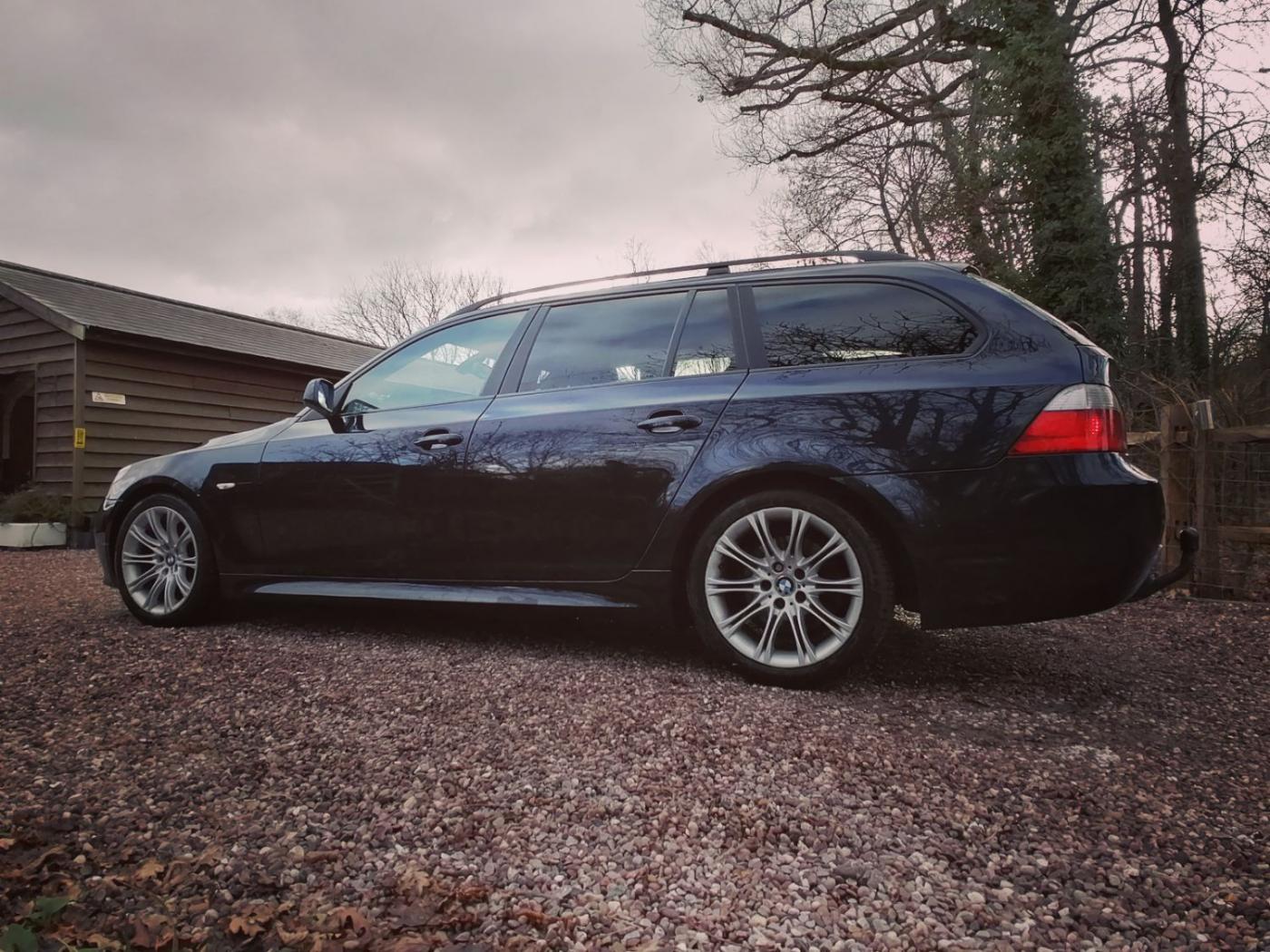 2006 BMW 530d M Sport Touring with the N57 turbo charged 3.0 6 cylinder engine and wonderfully smooth automatic gearbox. This diesel engine has covered 226507k miles (fantastic service history) and is wearing Carbon Black metallic paint on 18 inch M Sport alloy wheels. The interior is Dakota black leather with heated sports seats. The rear windows also have factory sun tints.